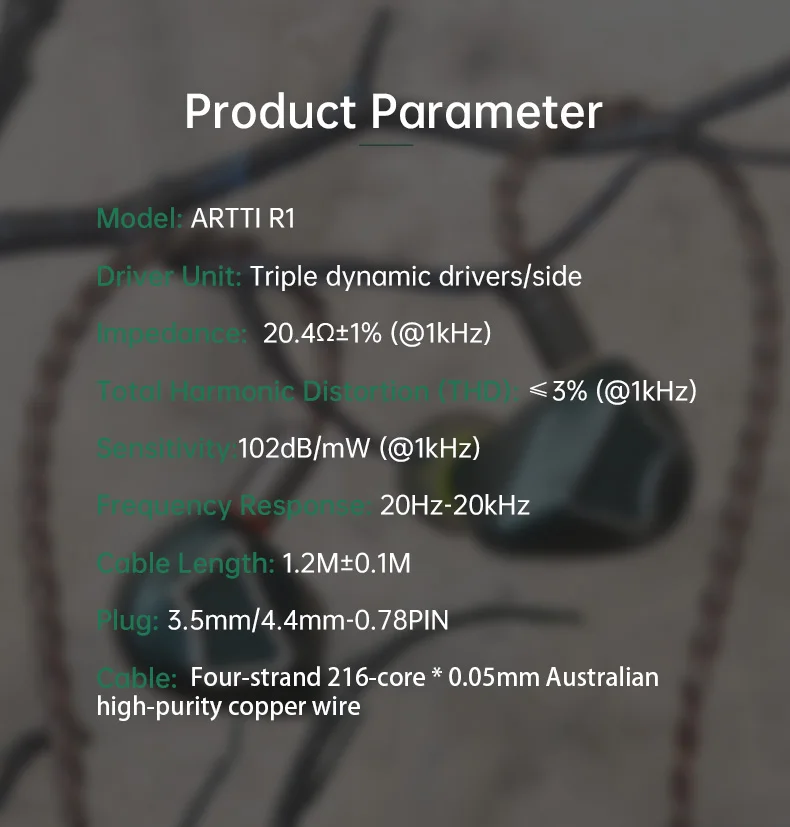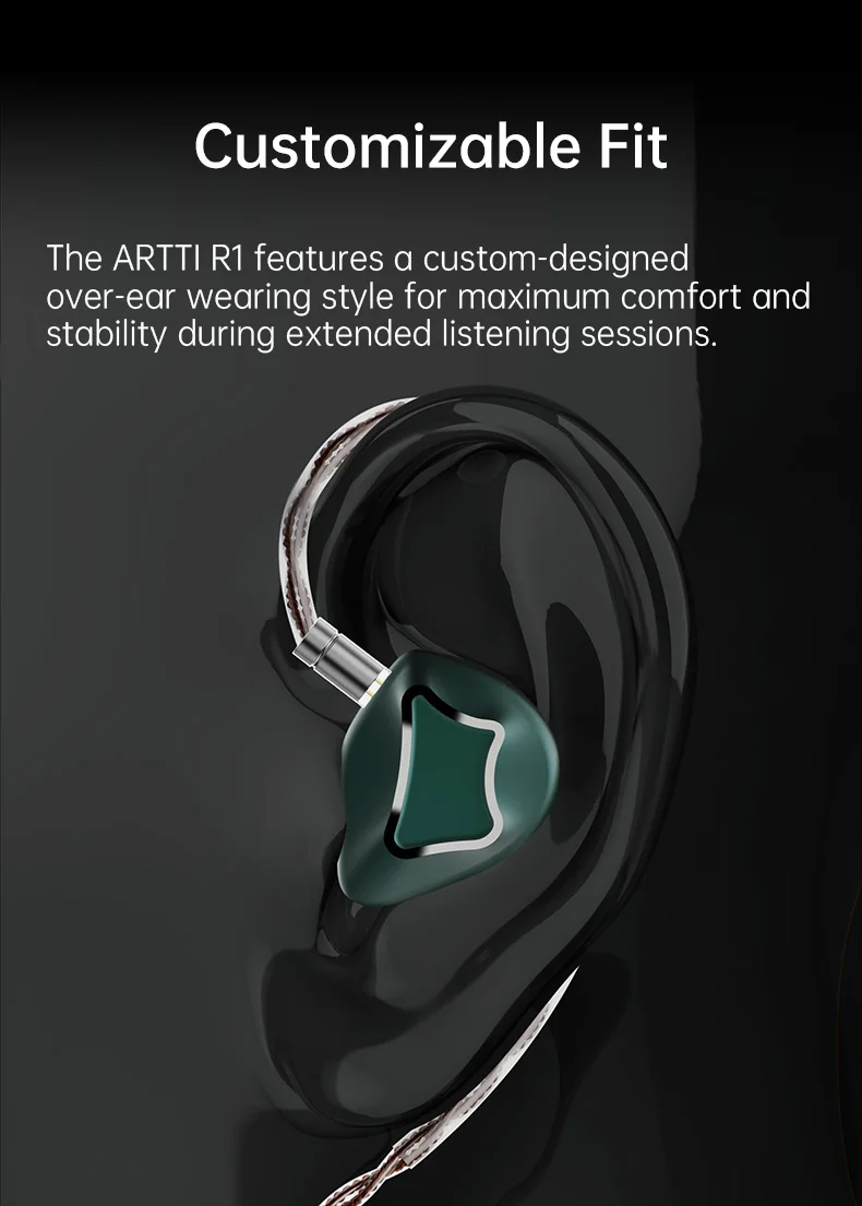 Передовая акустическая технология: ARTTI R1 обладает уникальной акустической системой, включающей два 6-мм динамических излучателя с подвесом из ПУ и титановым куполом в сочетании с 8-мм кастомным динамическим излучателем с композитной диафрагмой из бериллия. Эта конфигурация 2+1 динамических излучателей обеспечивает насыщенный, детализированный и погружающий аудиоопыт.
