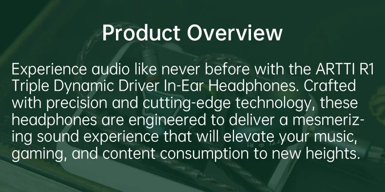 Погрузитесь в аудио как никогда раньше с внутриканальными наушниками ARTTI R1 с тремя динамическими излучателями. Созданные с точностью и передовыми технологиями, эти наушники спроектированы для обеспечения захватывающего звукового опыта, который поднимет вашу музыку, игры и потребление контента на новые высоты.